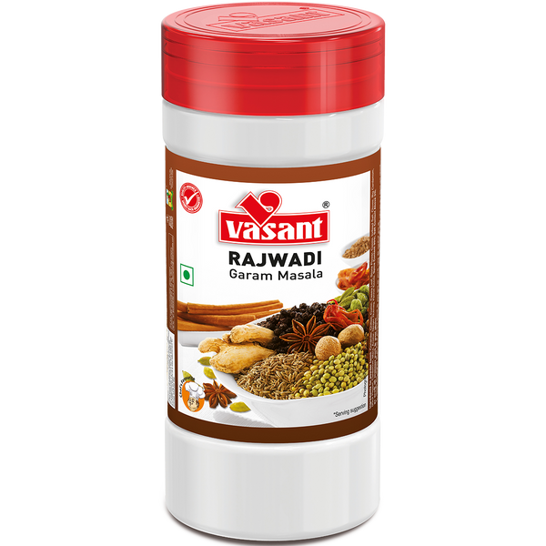 A rich blend of whole spices, Vasant Rajwadi Garam Masala is 100% pure in both colour and flavour. Add a dash of it in your curries, samosas, patra, bhakharwadi, usal, kathol, undhiyu, etc. and enrich their taste.