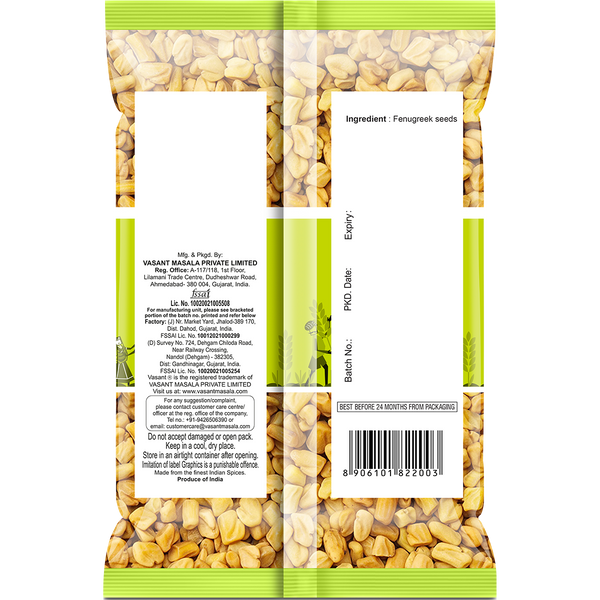 Vasant Fenugreek Seeds have been a secret ingredient for the richness in curries and other Indian delicacies. Sourced from the fertile lands of MP, Vasant Fenugreek Seeds are thoroughly cleaned and triple sifted to ensure the best quality seeds are packed for the consumers.