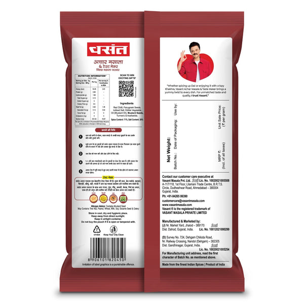 Miss the tangy, spicy, and unforgettable taste of traditional homemade pickles? You don't need a whole week to recreate that nostalgia. With Vasant Achar Masala & Taste Maker, the secret to perfect, mouth-watering achaar is now in your hands. Crafted with premium spices, perfectly roasted and blended, it delivers an authentic ghar-jaisa taste in minutes.