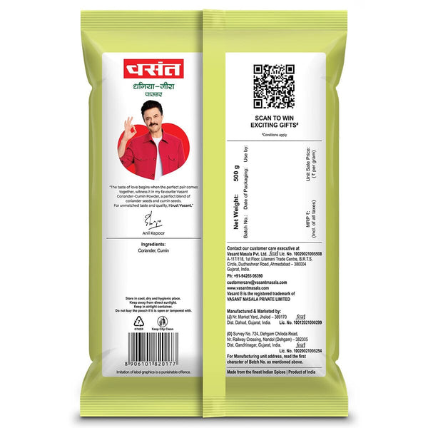 Made from a fine blend of fresh coriander seeds and cumin seeds, Vasant Coriander-Cumin Powder is processed in neatly maintained hygienic conditions and hence, is 100% pure. Like our other spices, it is good for health and a staple spice in the Indian diet.