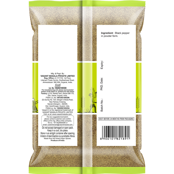 The sharp and pungent flavour of Vasant Black Pepper powder is a treat for the taste buds when used in an appropriate amount. Add the pepper powder to salads or stews to enjoy its soulful flavour.