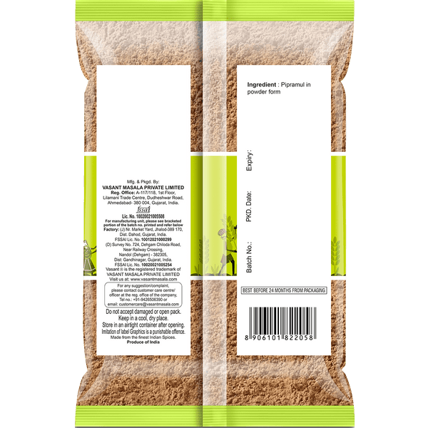 Derived from a rhizoid which is similar to ginger root, Peepramul powder is also popularly known as Ganthoda powder by the locals. Vasant Peepramul powder is made from fresh ingredients and processed in highly maintained hygienic facilities, ensuring that the powder is free from dust, stones, and other debris, which makes it unique. Savour the mild taste of the spice while availing its supportive medicinal benefits.