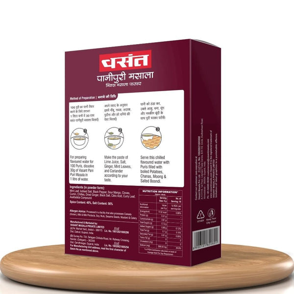 All the flavours of Pani Puri are in the flavored water, so it should be perfect. The Pani Puri Masala Mix by Vasant Masala is a delicious blend of flavorful spices that will take the taste of your Pani Puri to the next level. It is made with fresh and authentic spices, and you will get addicted to its flavour.