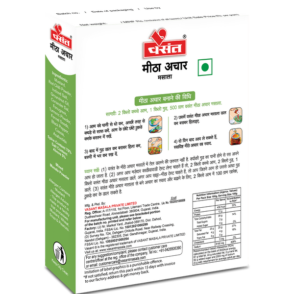 When you are buying the Sweet Achar masala from Vasant Masala, you do not have to worry about the quality of the spices and the process. We assure you that our products have the same purity as your mother's love.