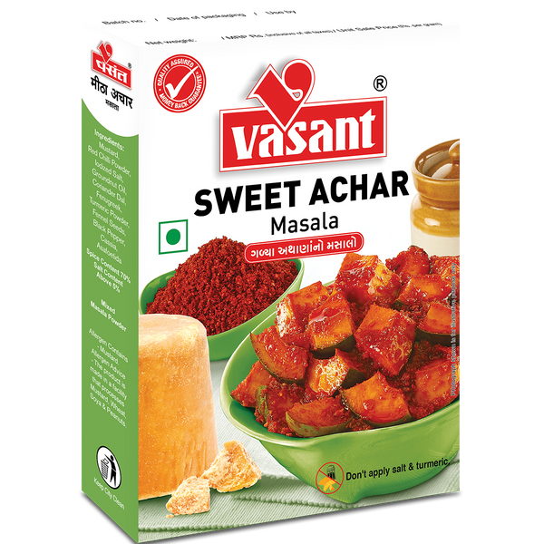 Just like the sour and spicy pickle, sweet pickle is a favourite among many. Since a lot of people compliment their food with sweet pickle, Vasant Sweet & Marwadi Achar Masala is a special offering for them. Made out of varied spices and sweet ingredients, Vasant Sweet Achar Masala perks up the food.